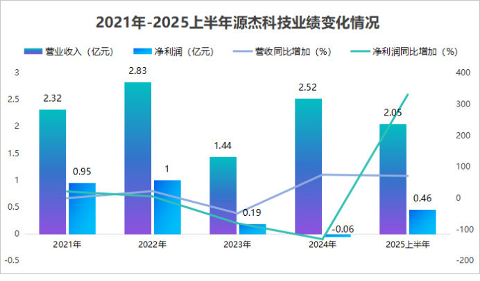 2025年上半年,源杰科技交出了一份亮眼的成绩单:实现营收2.05亿元,同比增长70.57%;净利润0.46亿元,同比大增330.31%。这一增速远超行业平均水平,反映出公司正处于快速增长通道。