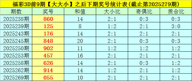 一、上期回顾:福彩3D第2025279期奖号为:752,奖号类型开出组六,大小比为2:1,奇偶比为2:1,和值为14,跨度为5,012路比为0:1:2。