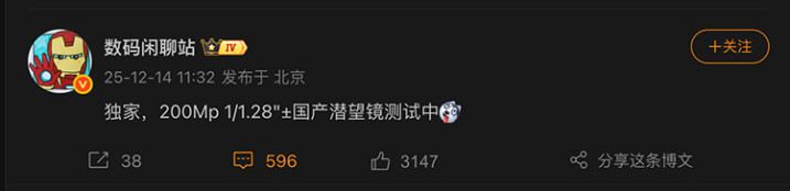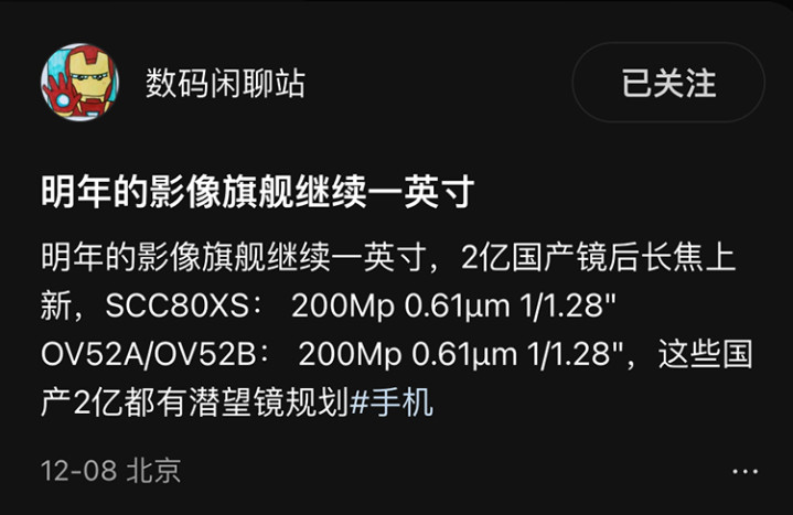 而在长焦方面,博主前面也爆料过,荣耀在测试一款2亿像素约1/1.28英寸底的国产潜望镜。目前市面上同时规划了3个该规格的产品,即SCC80XS、OV52A、OV52B,未来超大杯仍然会在2亿大底上继续卷。